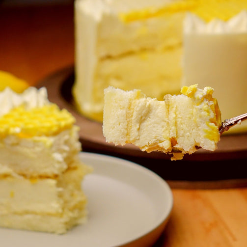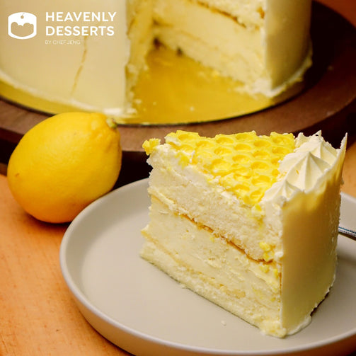 Made with layers of fluffy vanilla chiffon and lemon cream cake filled with lemon marmalade jelly & balanced with our cream cheese frosting and white Belgian chocolate!