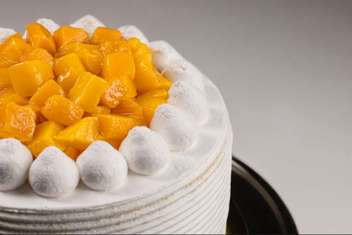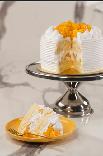 Two layers of soft, fluffy, and delicious cakes generously filled with ripe mangoes and whipping cream